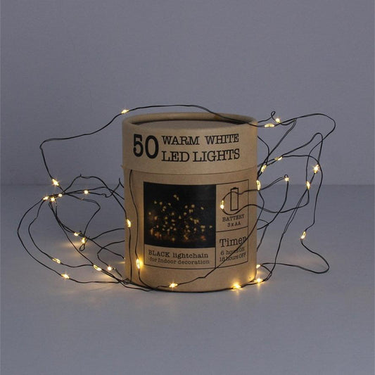 All Gone, Back Soon!50 Warm White LED Lights On Black Wire 5M