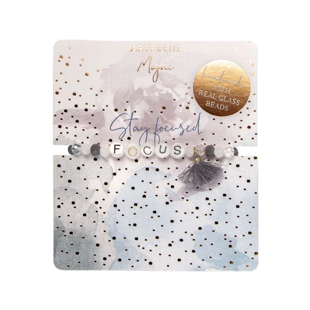 Focus on yourself: Whether with meditation, journaling or small self-gifts. The high-quality MAJOIE bracelet reminds you to focus on your life and gives you small moments of self-reflection. The grey and white subtle glass beads blend perfectly into any outfit and are carefully handcrafted. Rounded off by the gold-framed tassel, it becomes your accessory for every day. Born from the idea of giving joy, our designer Beate created the high-quality MAJOIE bracelets at first for her daughters and now also for you!