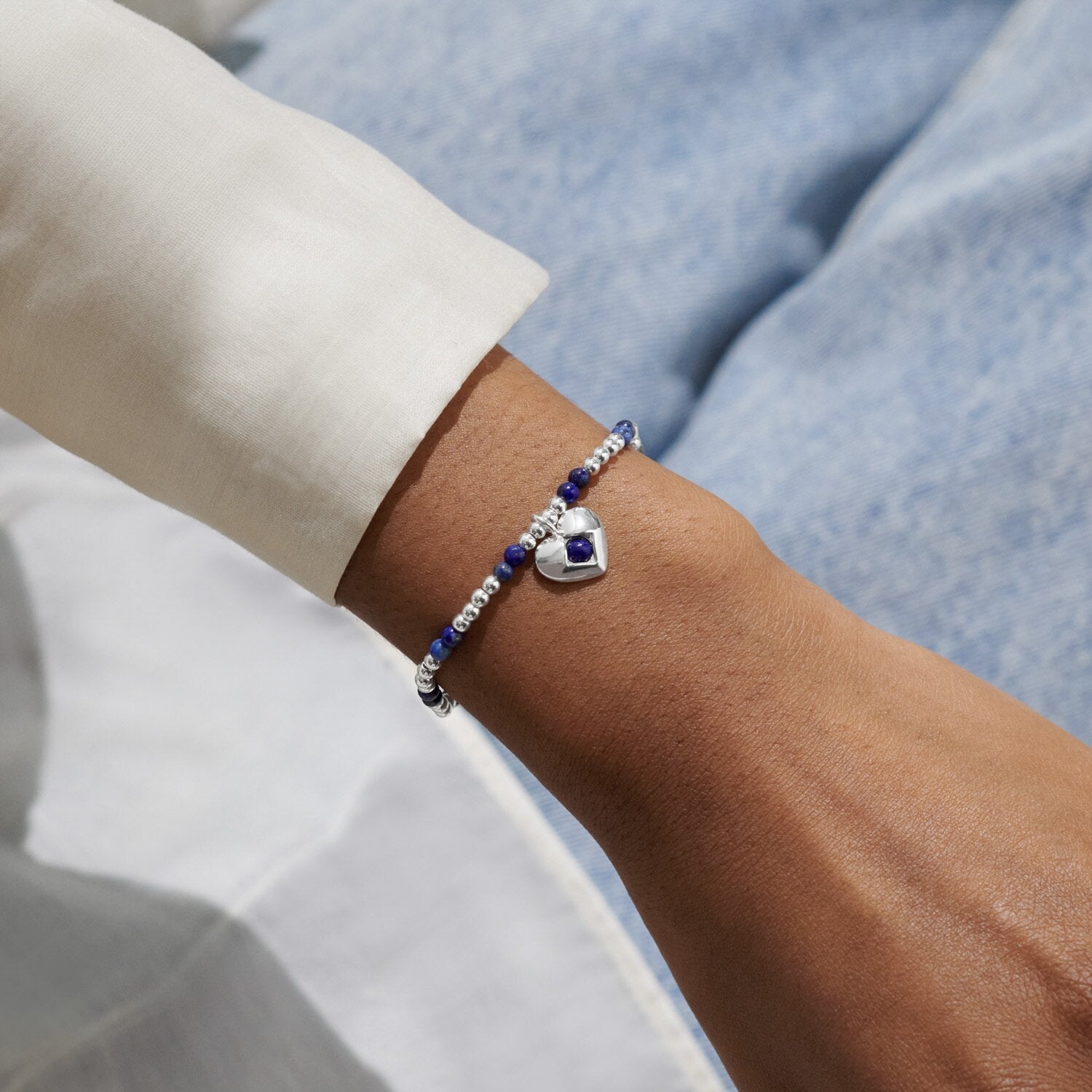 Let us introduce you to our Birthstone A Little bracelets - now with an elevated design! Featuring a pretty gemstone-set heart charm and threaded with alternating silver-plated beads and semi-precious Lapis Lazuli gemstones, our Birthstone A Little 'September' bracelet in silver plating is sure to make the birthday girl’s stack shimmer. Wrapped around a coloured limewash card with gold foil detailing, this little style makes the most wonderful gift, whether it’s gifted alone or alongside the rest of our birthstone collection!