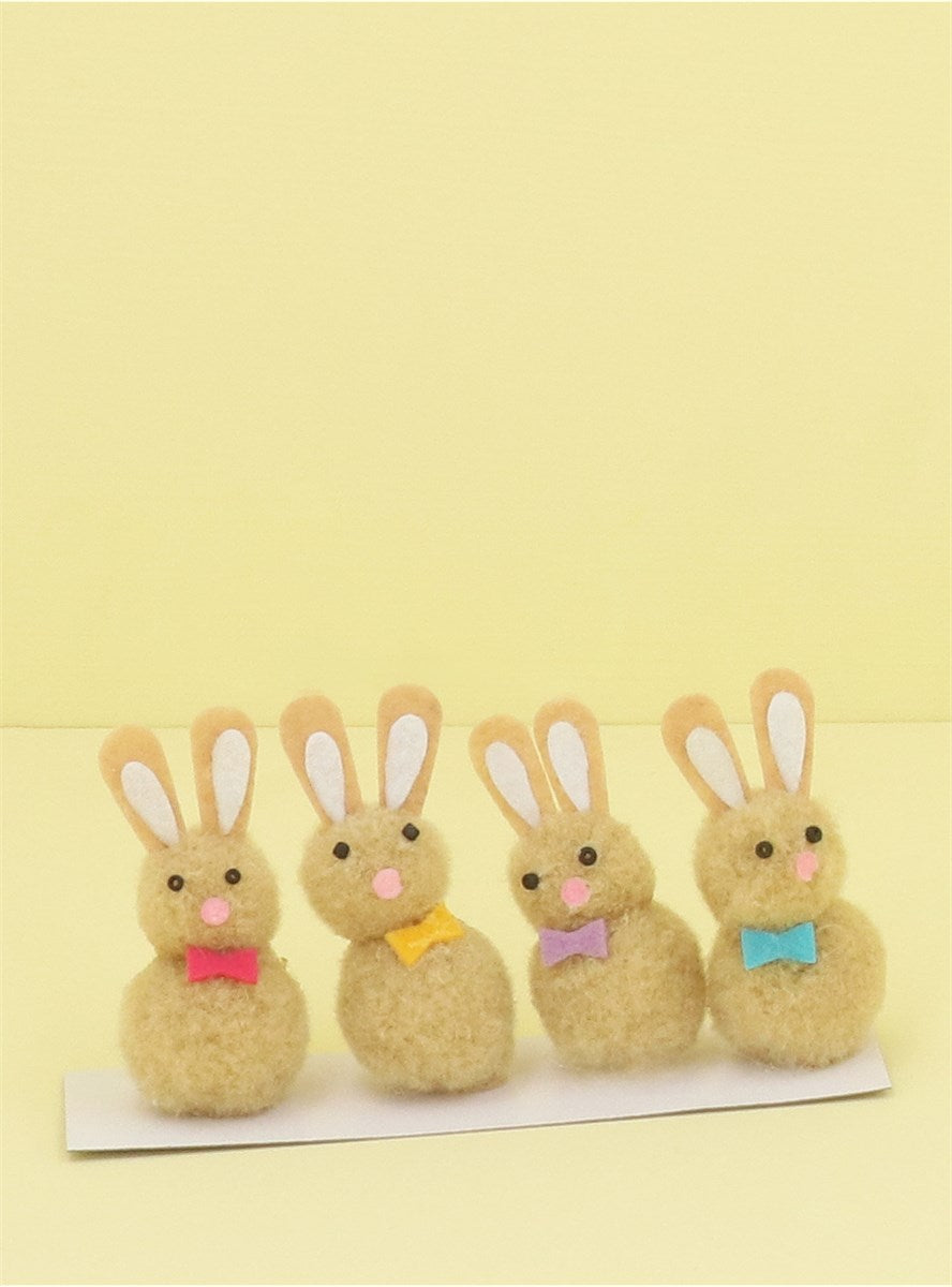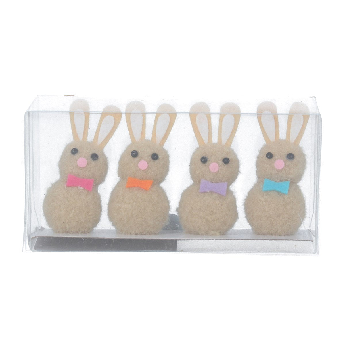 Chenille Bunnies w Bows Box/4 Fabric Dec 6cm