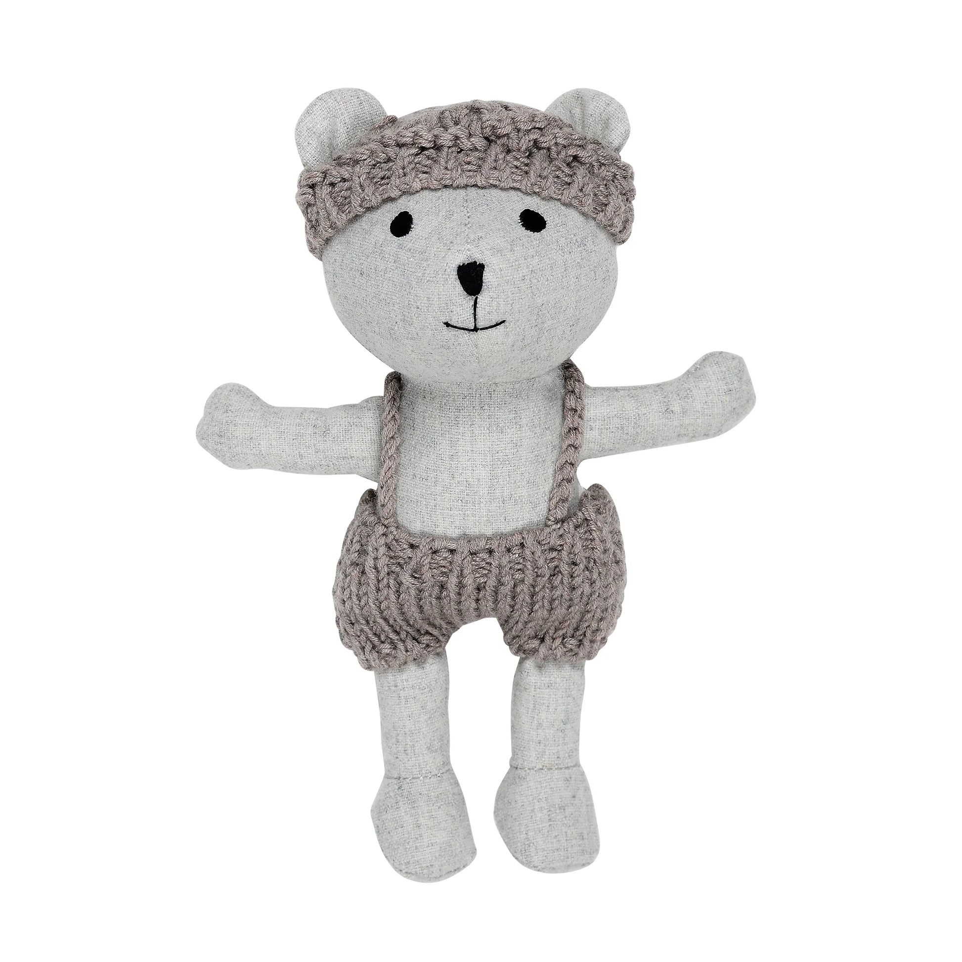 George Bear, a playful addition to our minis range. Made from the softest wool blend fabric, this adorable bear features overalls and a hat knitted with Australian merino wool. Who wouldn't love George?