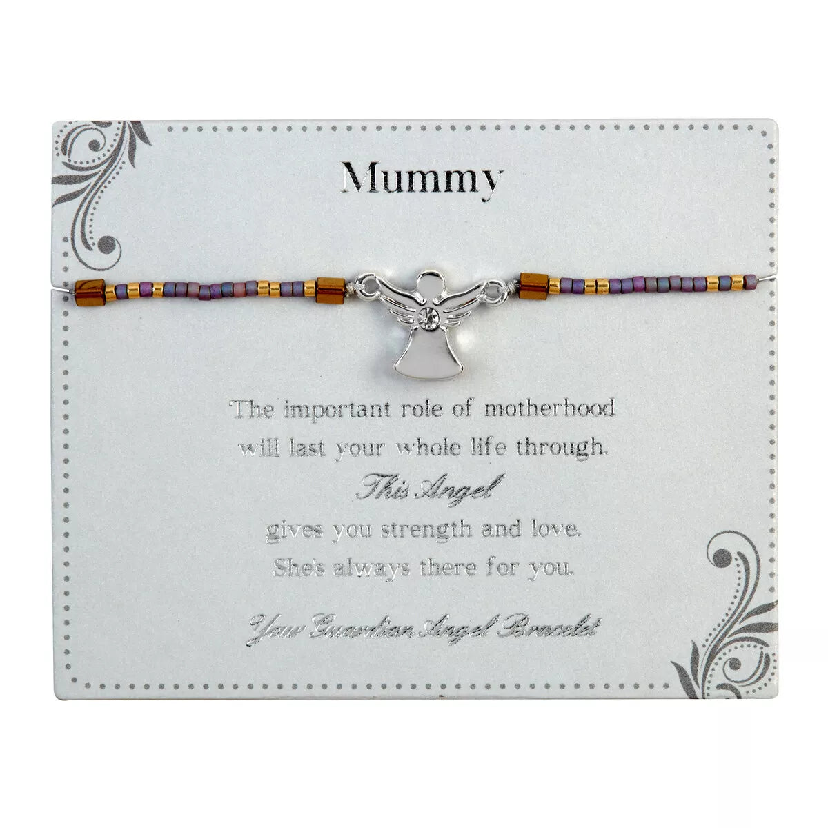 Details: A silver coloured angel on a beaded bracelet string, presented on a beautiful backing card and complete with a small silver envelope for gifting.