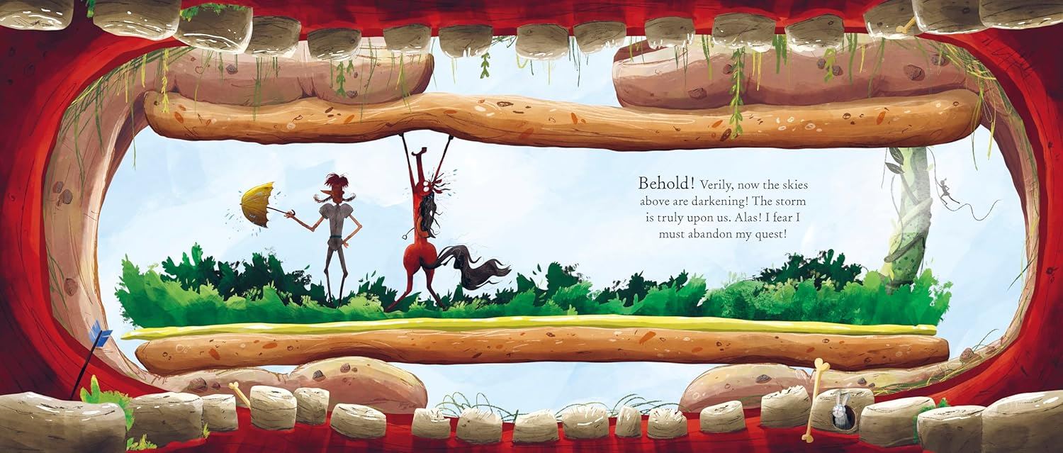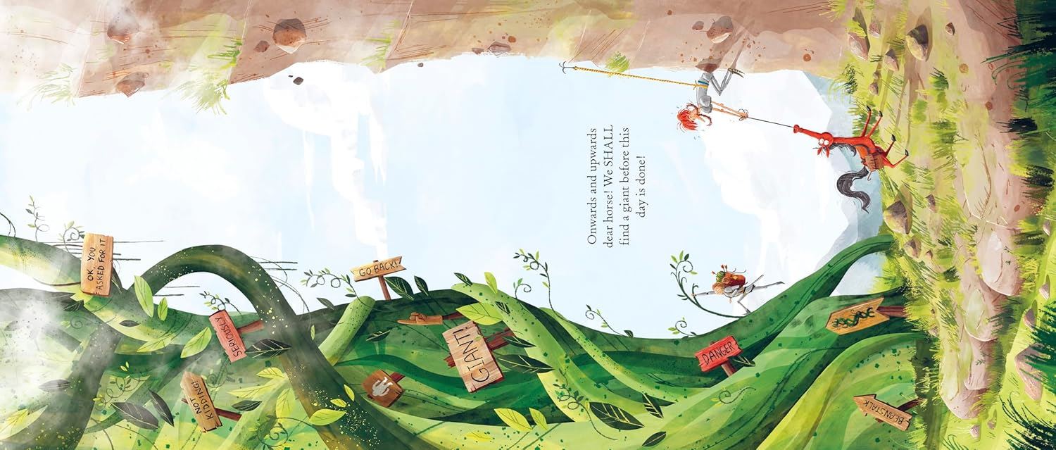 All the other knights in the kingdom say he could never track down a giant, but the knight has just come across a most fortuitous find! A book, 'How to Spot a Giant Before He Spots You.' And so, with his long-suffering horse, the knight sets off to find a giant. His journey takes him through huge craters, past a towering beanstalk and up a strange-looking mountain. But is that thunder he can hear or is he getting closer to giant-sized peril?