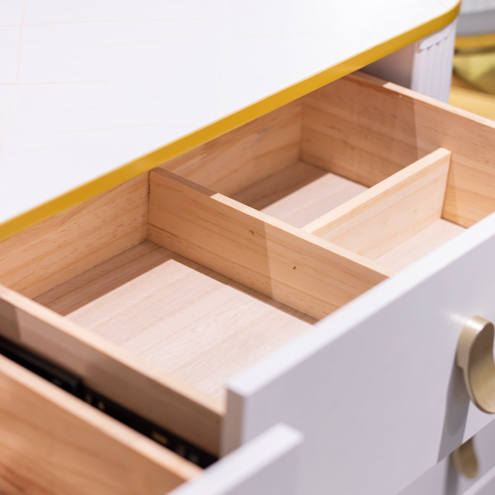 - The Nadia Dressing table comes with a stool and a mirror with a built in light. It has multiple drawers to keep your cosmetics