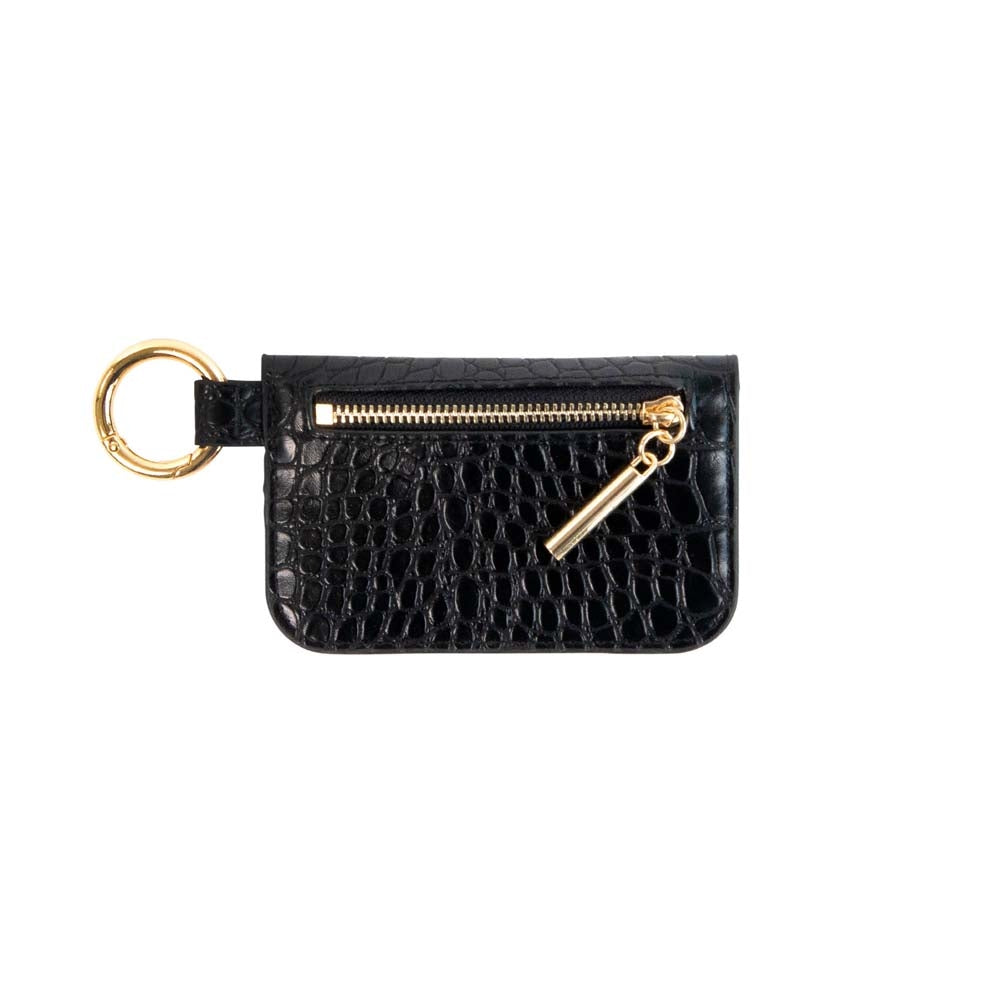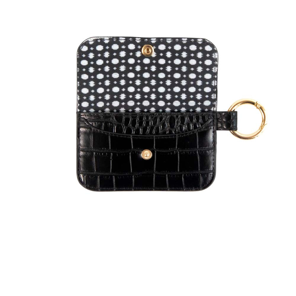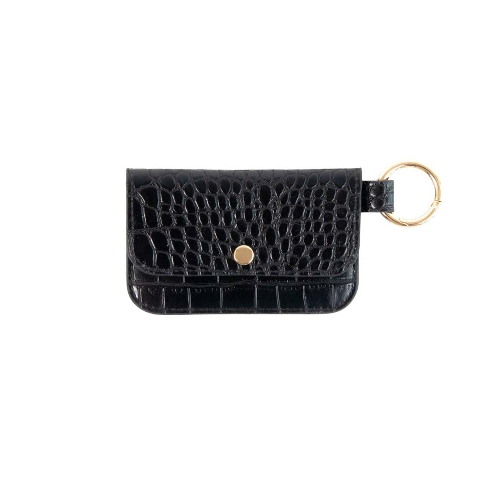 Easy paying for that delicious ice cream or have your loyalty card fast at hand for the next stamp: With this stylish wallet from premium brand MAJOIE, you'll always be the fastest at the checkout. The elegant snap hook allows you to attach the small coin purse to your bag or key ring and have it ready to hand when your next favourite item is just waiting to land in your shopping bag. The inside compartment offers enough space for the most important cards, notes and tickets, and the coin pocket on the back makes it easy to pay for small purchases. But this smart wallet is not only functional, it is also a visual highlight: the leather look made from vegan material and the elegant crocodile design in midnight black turn the wallet into a real eye-catcher for every day.